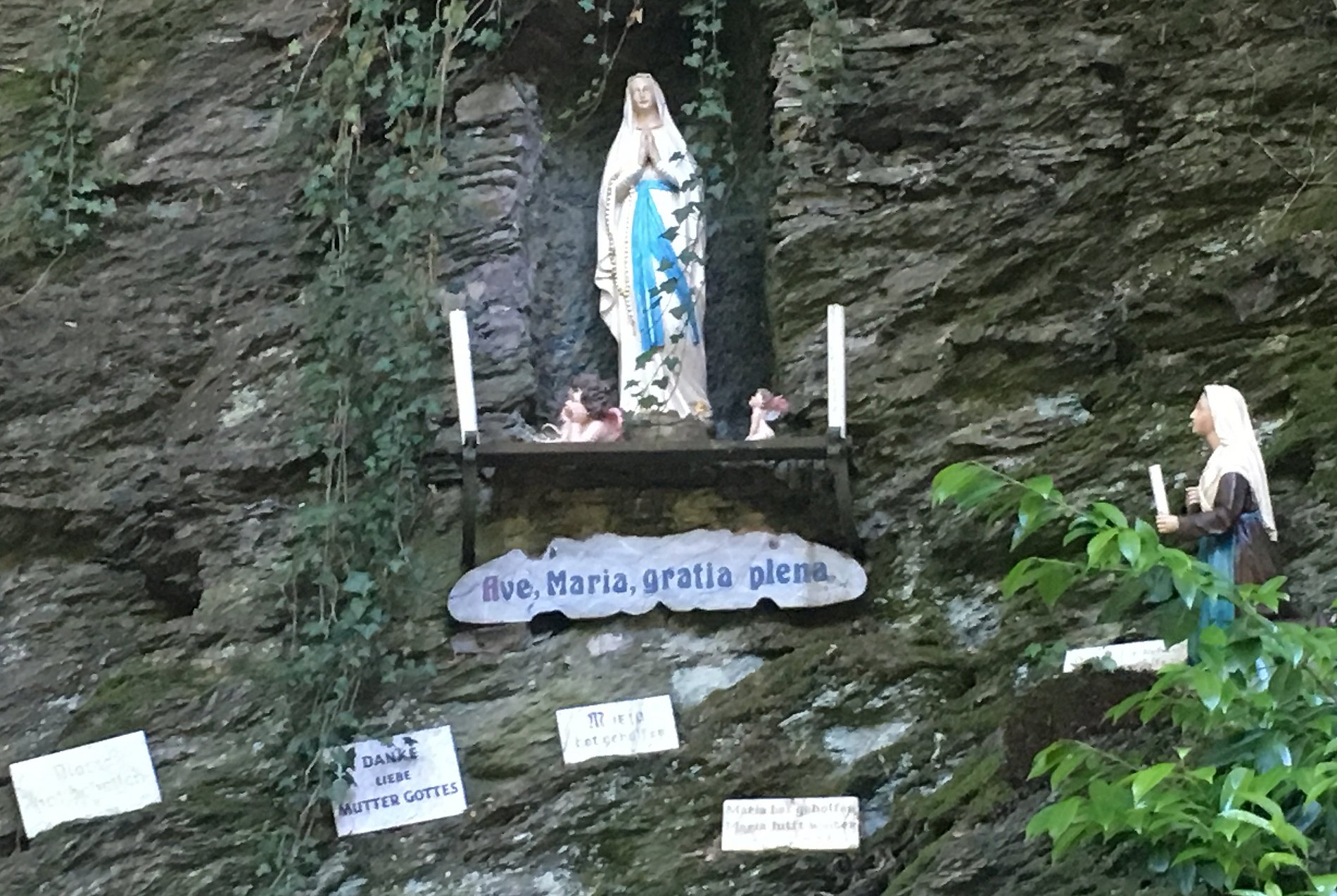 Die Mariengrotte befindet sich unterhalb der Kirche am Dombach. Sie ist der Lourdes-Grotte nachempfunden und wurde 1934 geweiht. Im Mai findet eine Lichterprozession von der Kirche zur Mariengrotte statt.