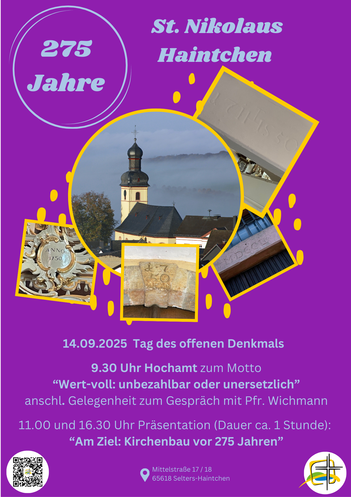 Die St. Nikolaus-Kirche in Haintchen wird in diesem Jahr 275 Jahre alt. Am Sonntag, 14. September 2025, lädt der Ortsausschuss deshalb zum „Tag des offenen Denkmals“ ein.